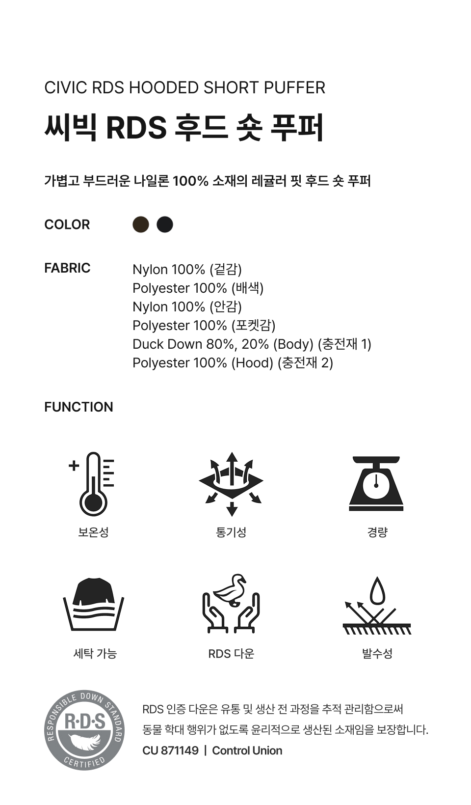 填充物(충전재 1 / 身體部分): Duck Down 80% / Feather 20%